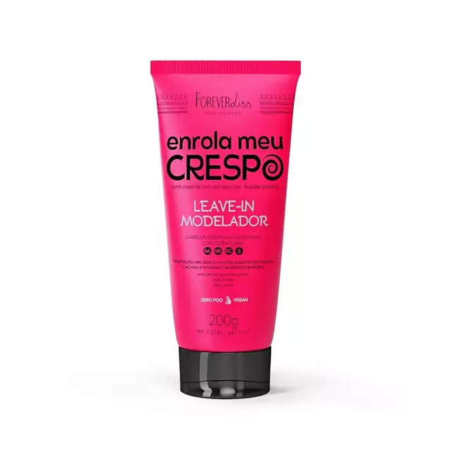 O QUE VOCÊ PRECISA SABER O Leave-in Forever Liss Enrola Meu Crespo 200g é especialmente formulado para cabelos crespos e cacheados, oferecendo definição e controle dos fios sem pesar. Sua fórmula leve promove hidratação e nutrição, realçando o formato natural dos cachos com brilho e maciez.
